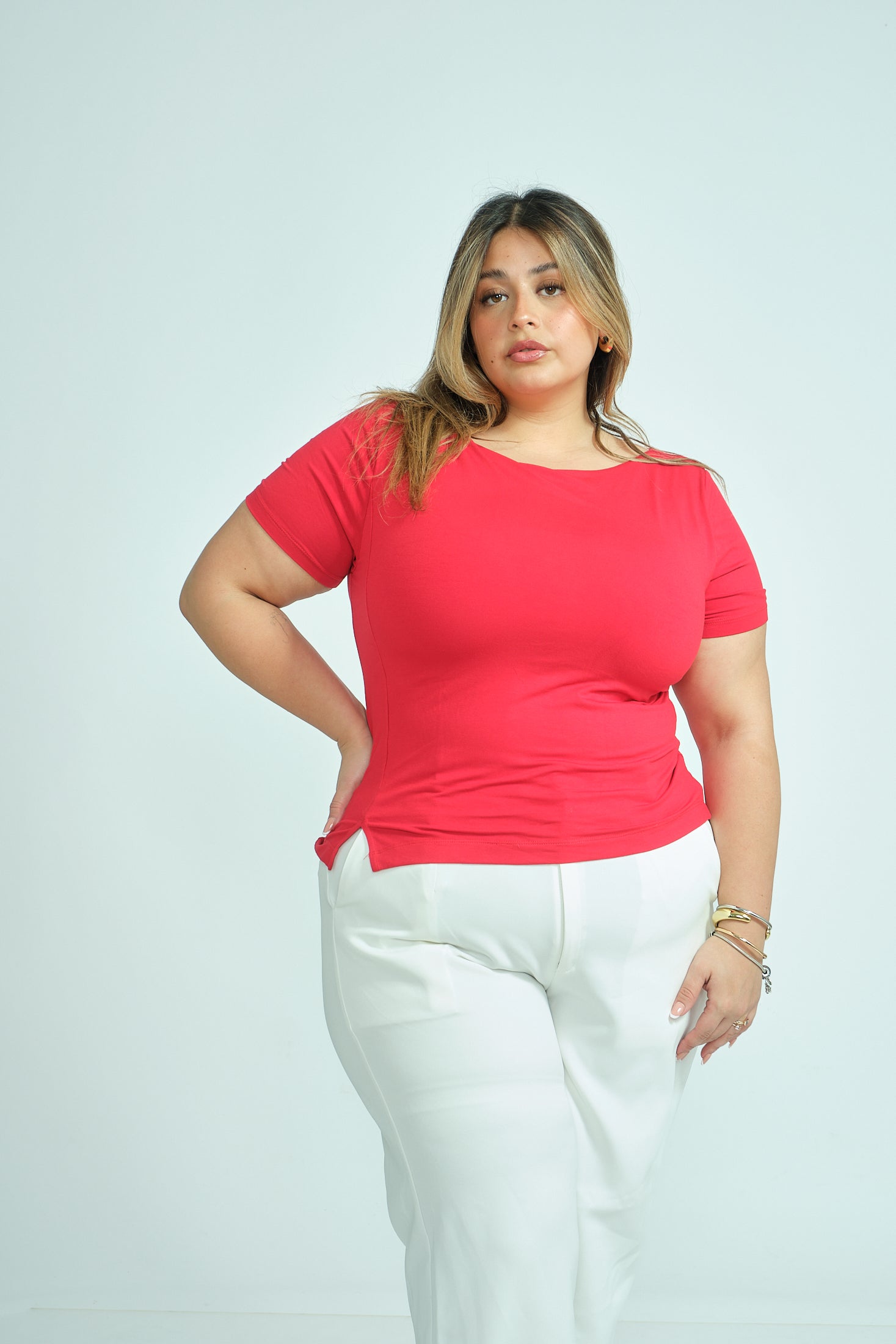 Alexandra (cabello rubio) está usando la talla 2XL y Sandra (cabello rojo) está usando la talla M