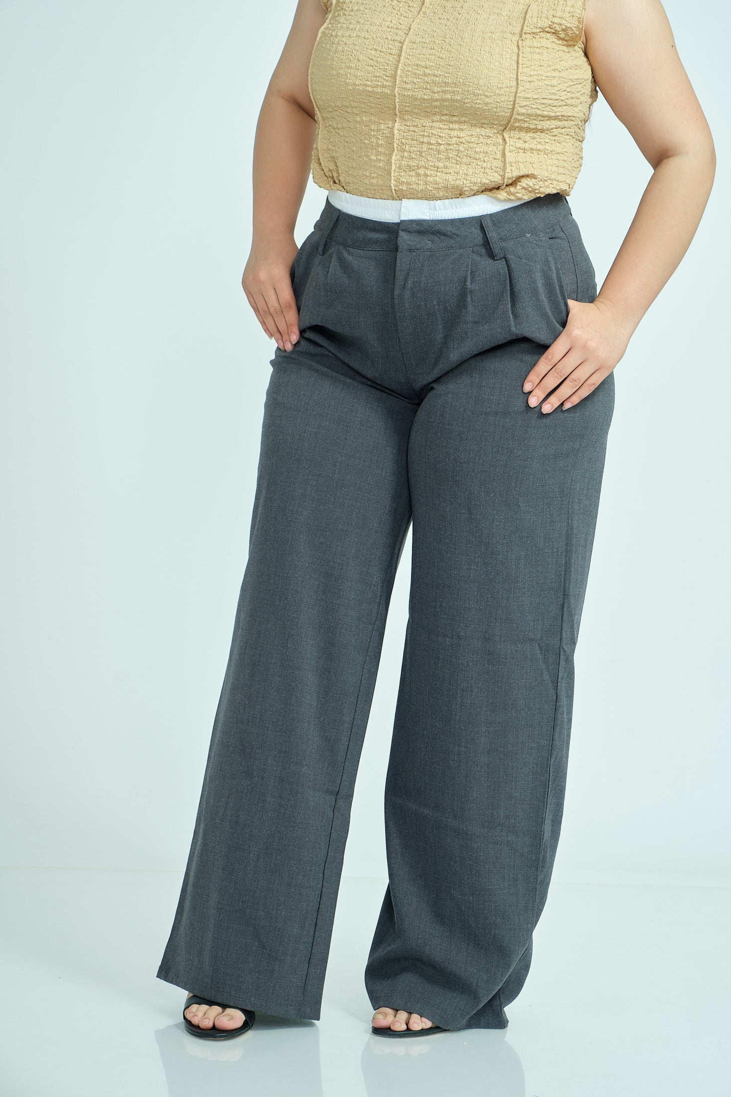 - Pantalón formal recto con detalle de pretina blanca encima.