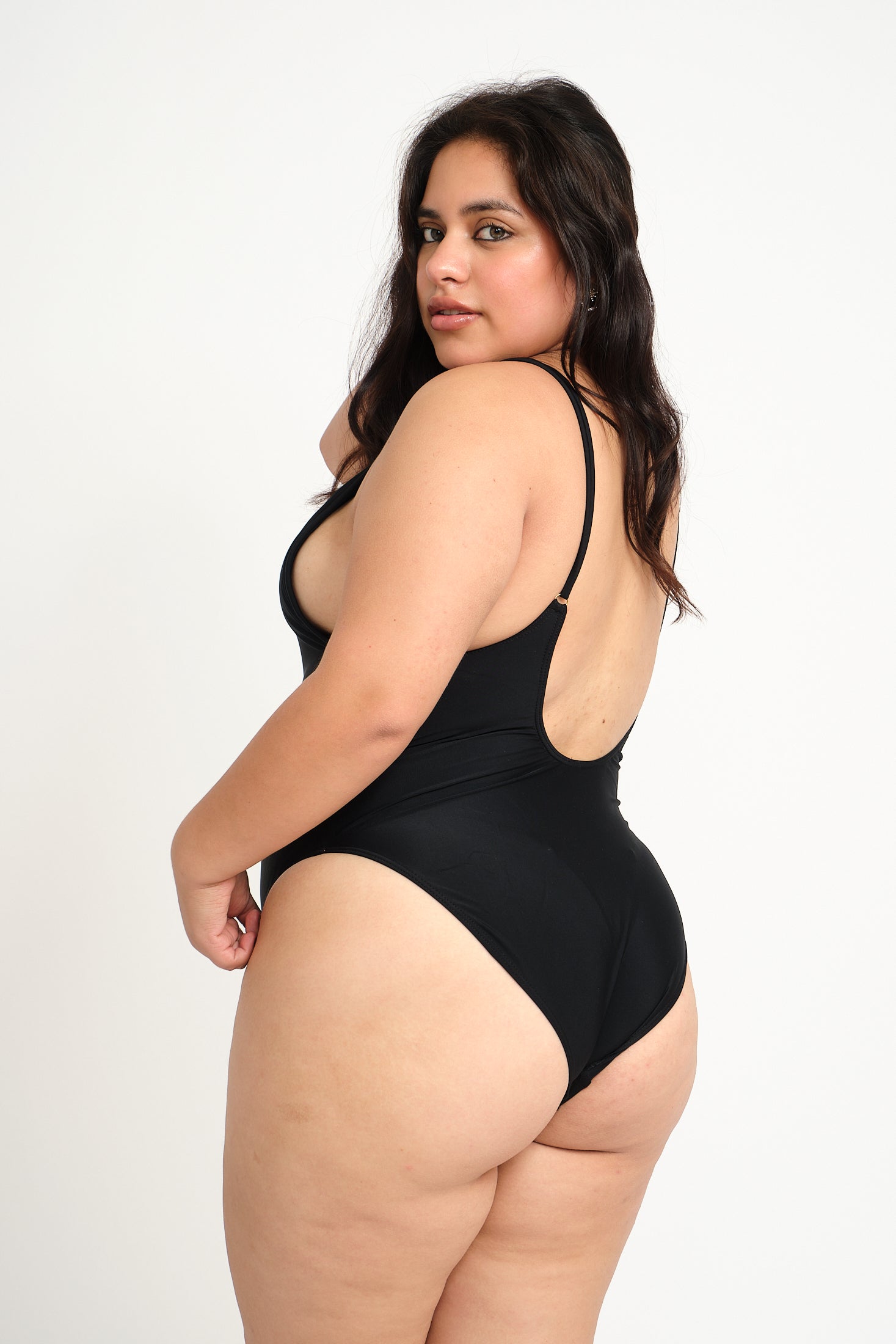 Alexandra (cabello rubio) está usando la talla 2XL y Fátima (cabello oscuro) está usando la talla L.