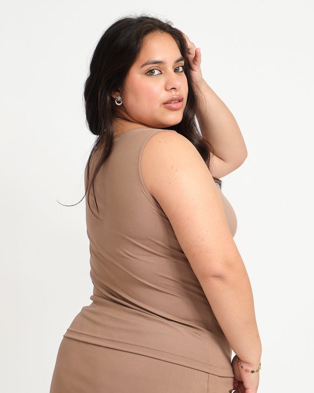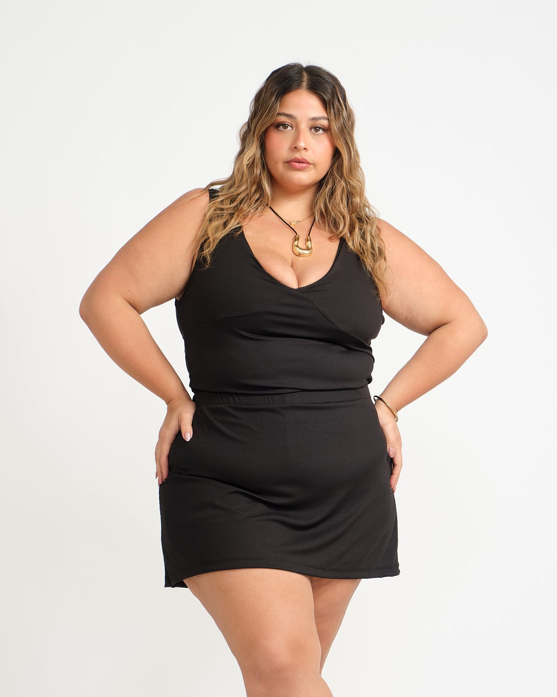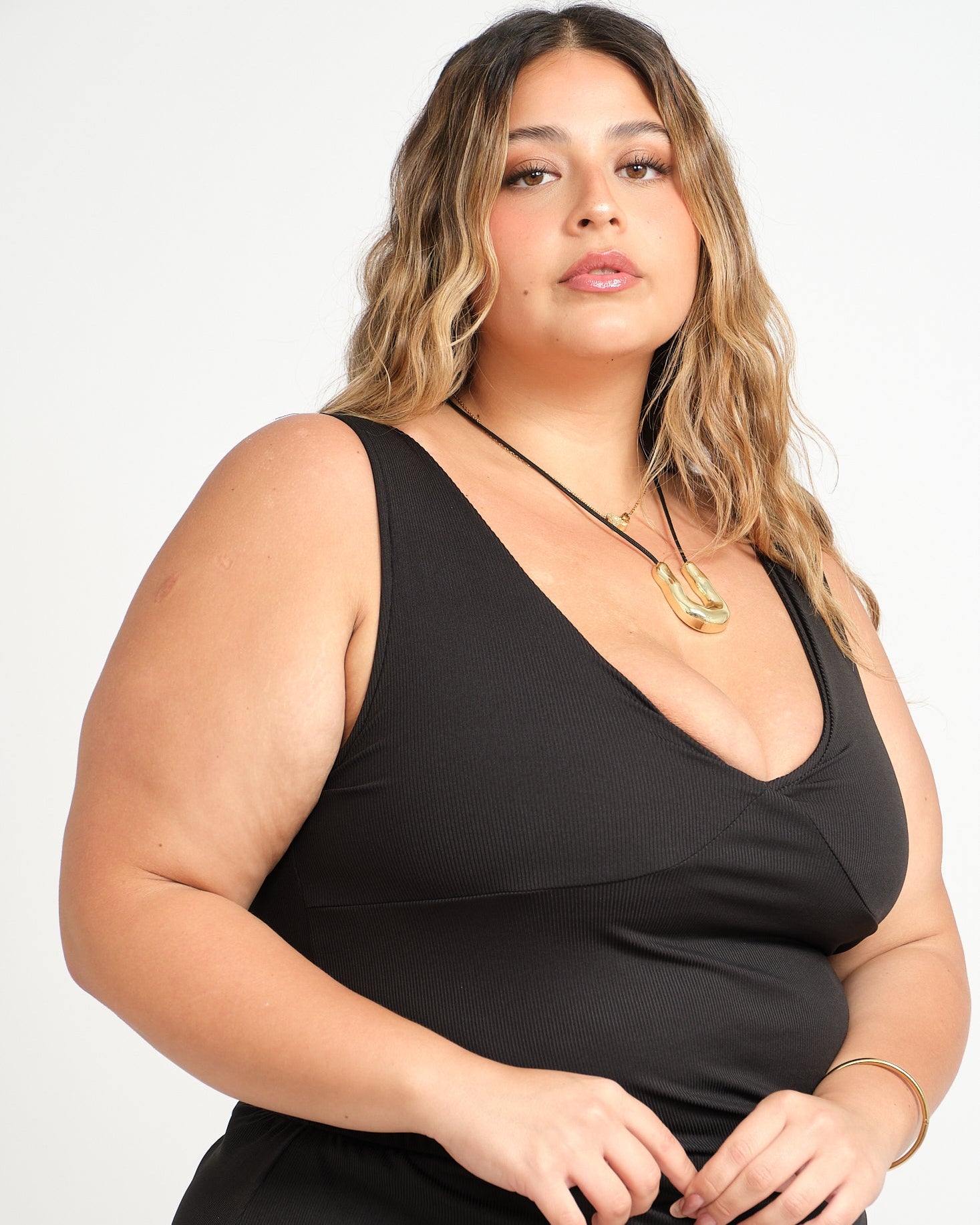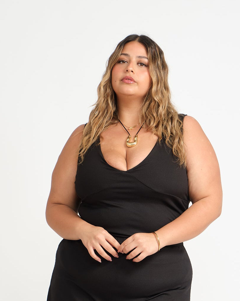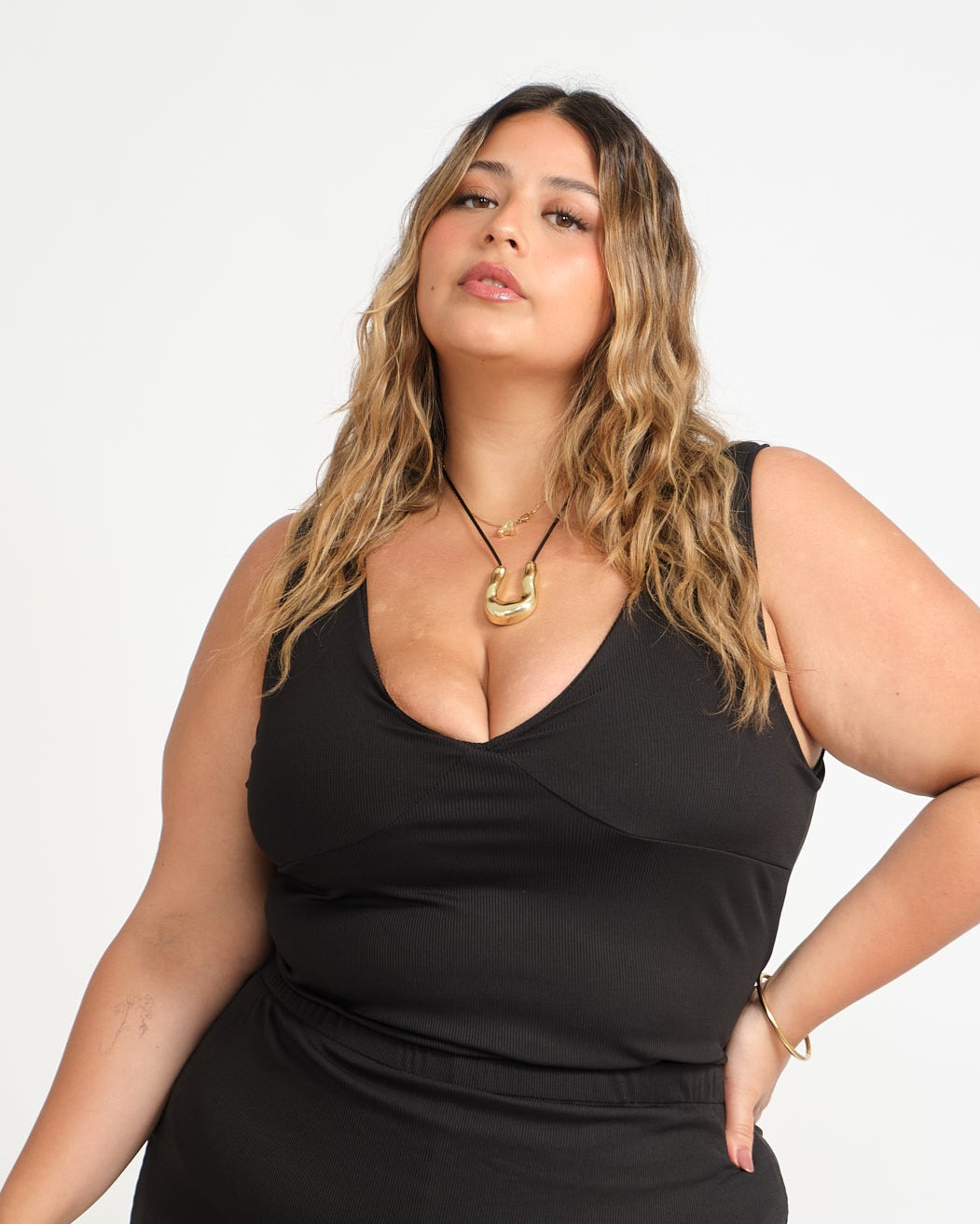 - Top con escote V profundo, el largo es hasta la cadera.