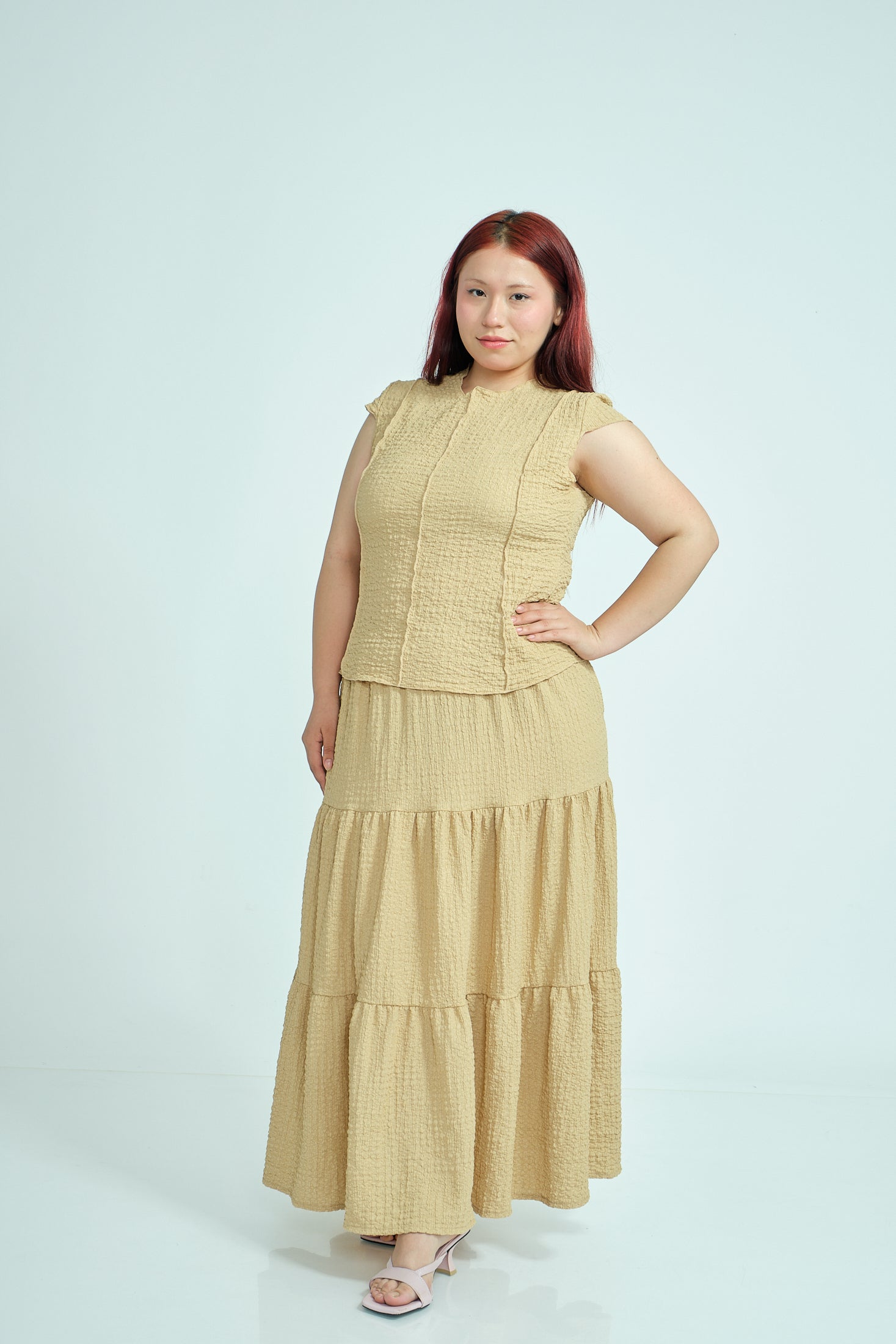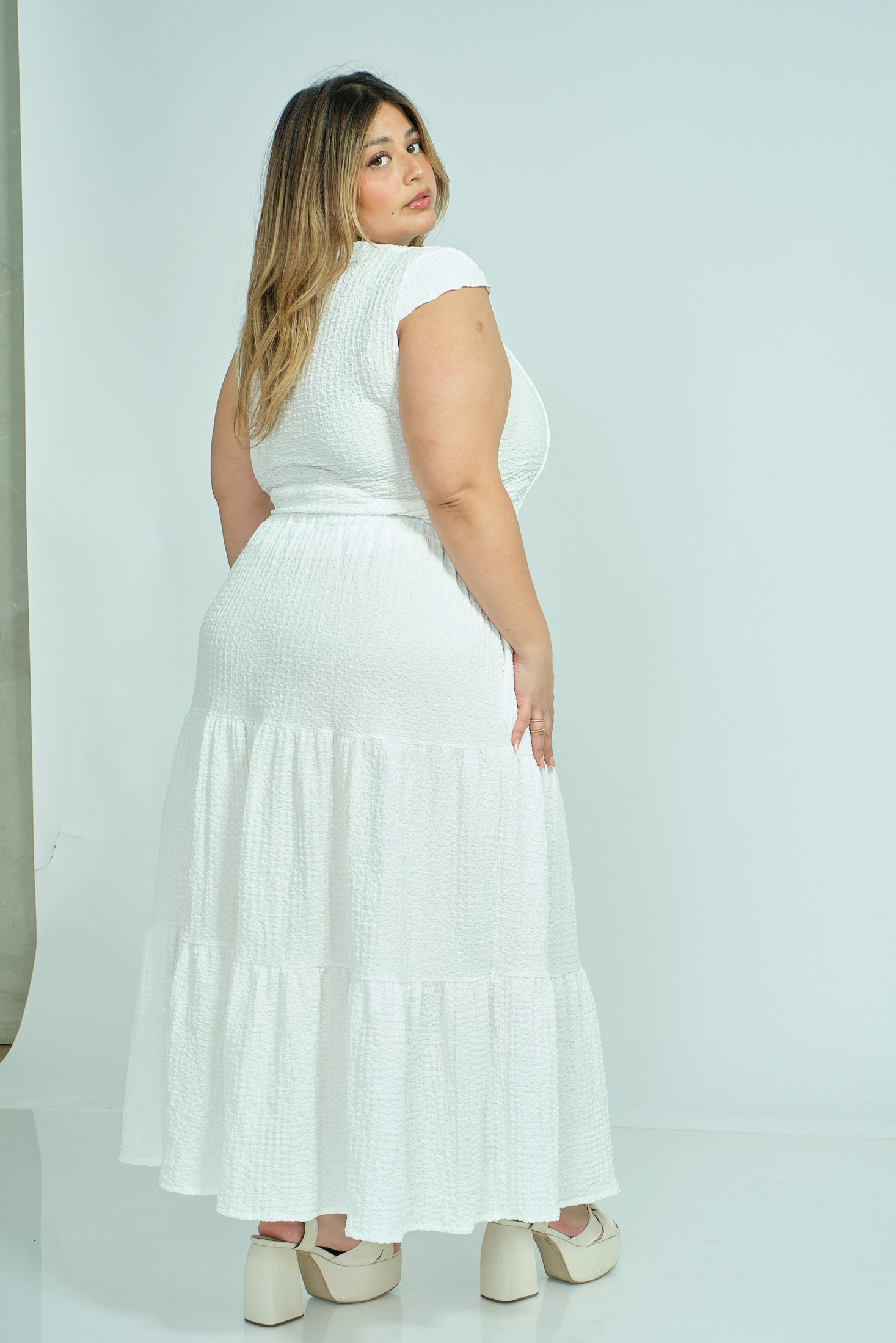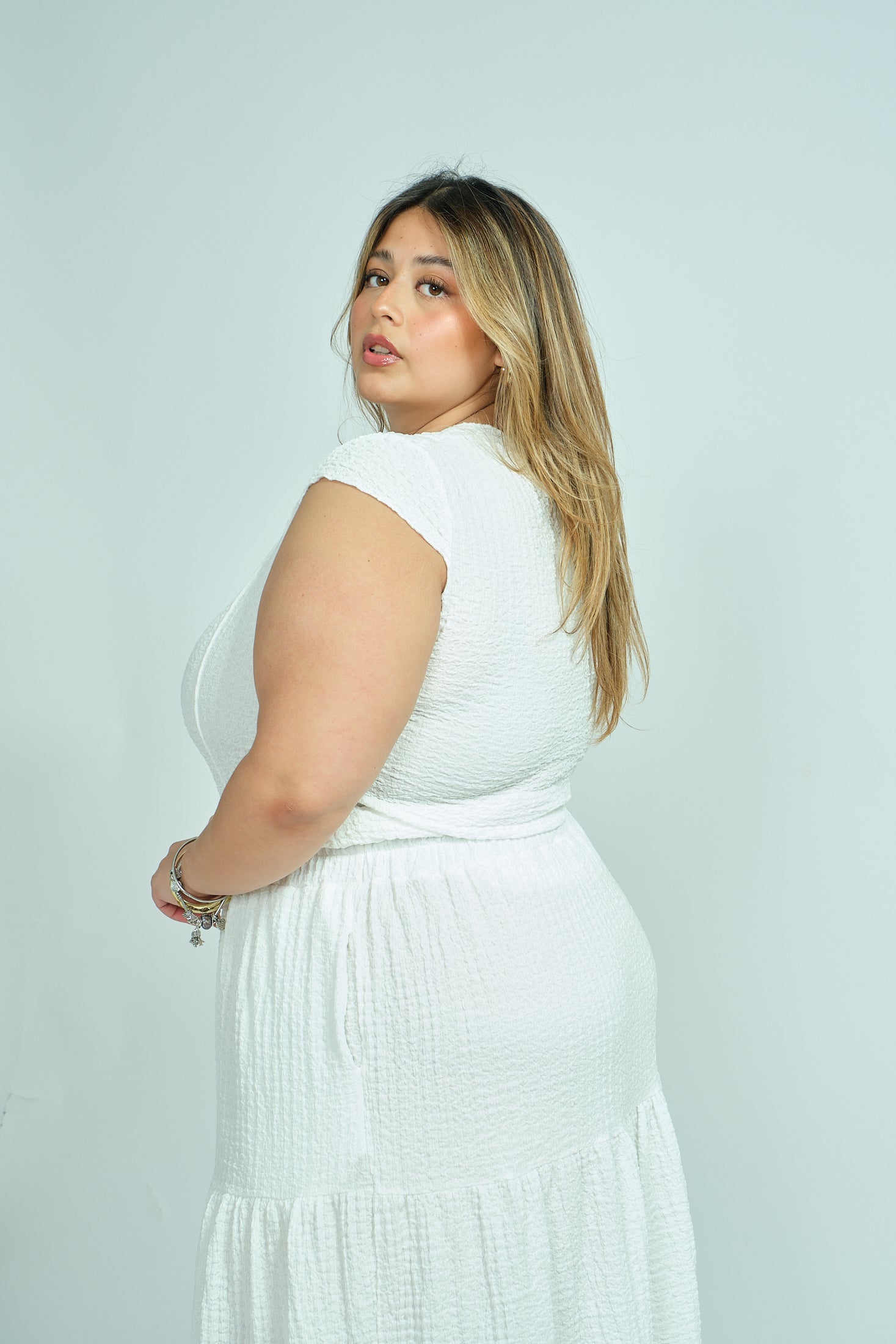Alexandra (cabello rubio) está usando la talla 2XL y Sandra (cabello rojo) está usando la talla M